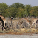 An den nächsten Wasserlöchern die wir anfuhren war leider nicht viel zu sehen. Unterwegs konnten wir mehrmals Giraffen bestaunen die direkt neben der Straße Blätter aus Bäumen mit langen Stacheln heraus bissen.