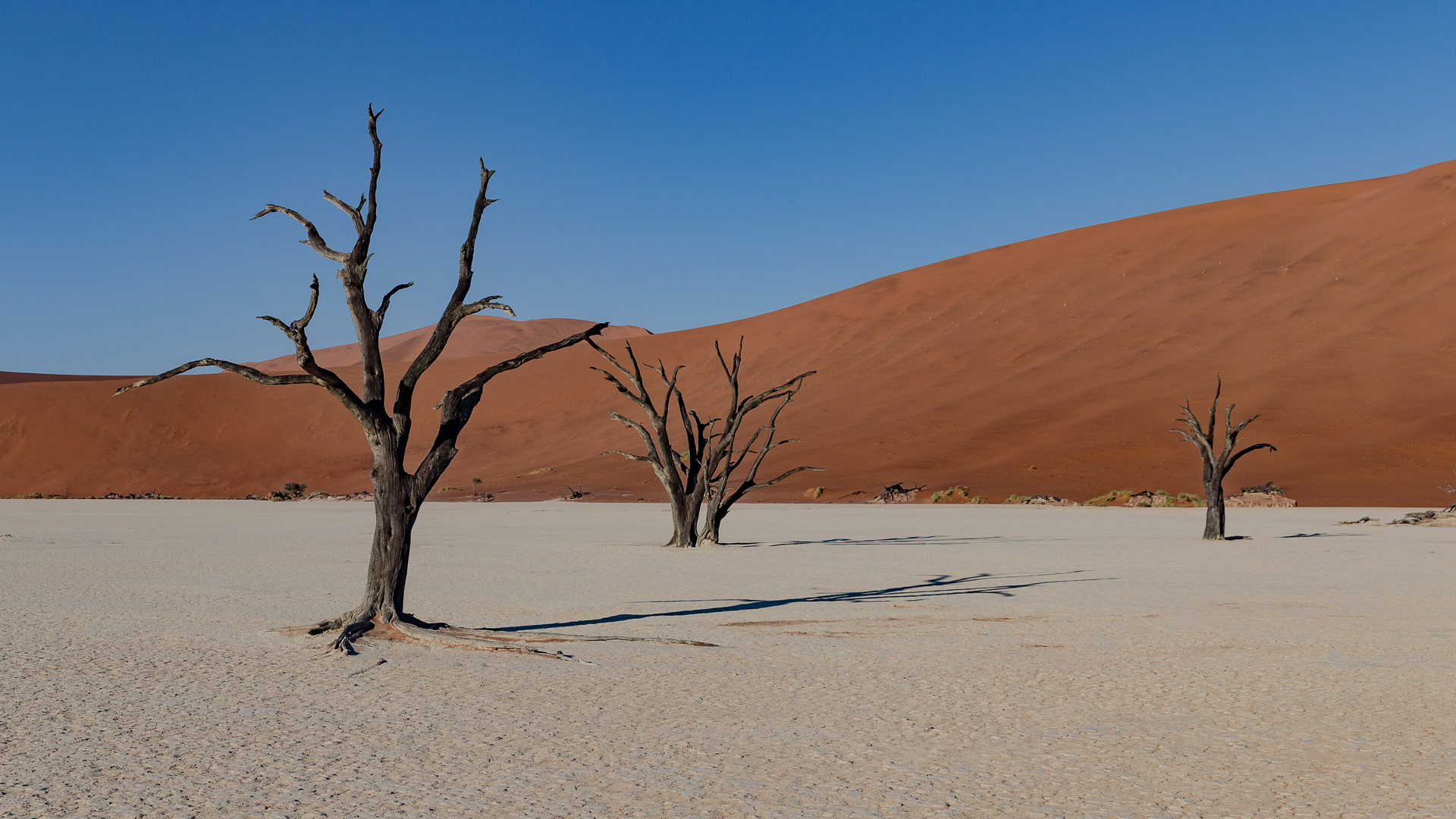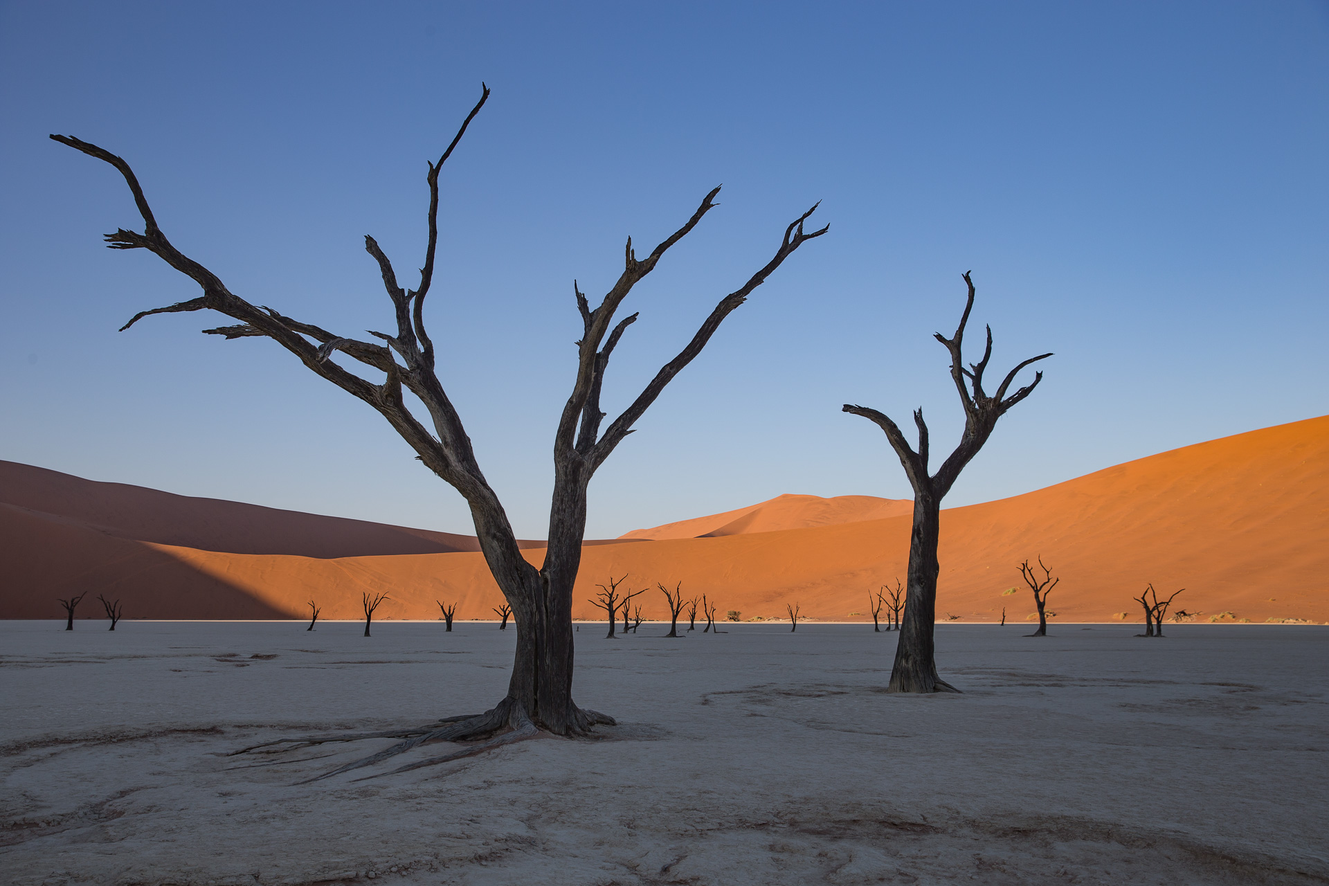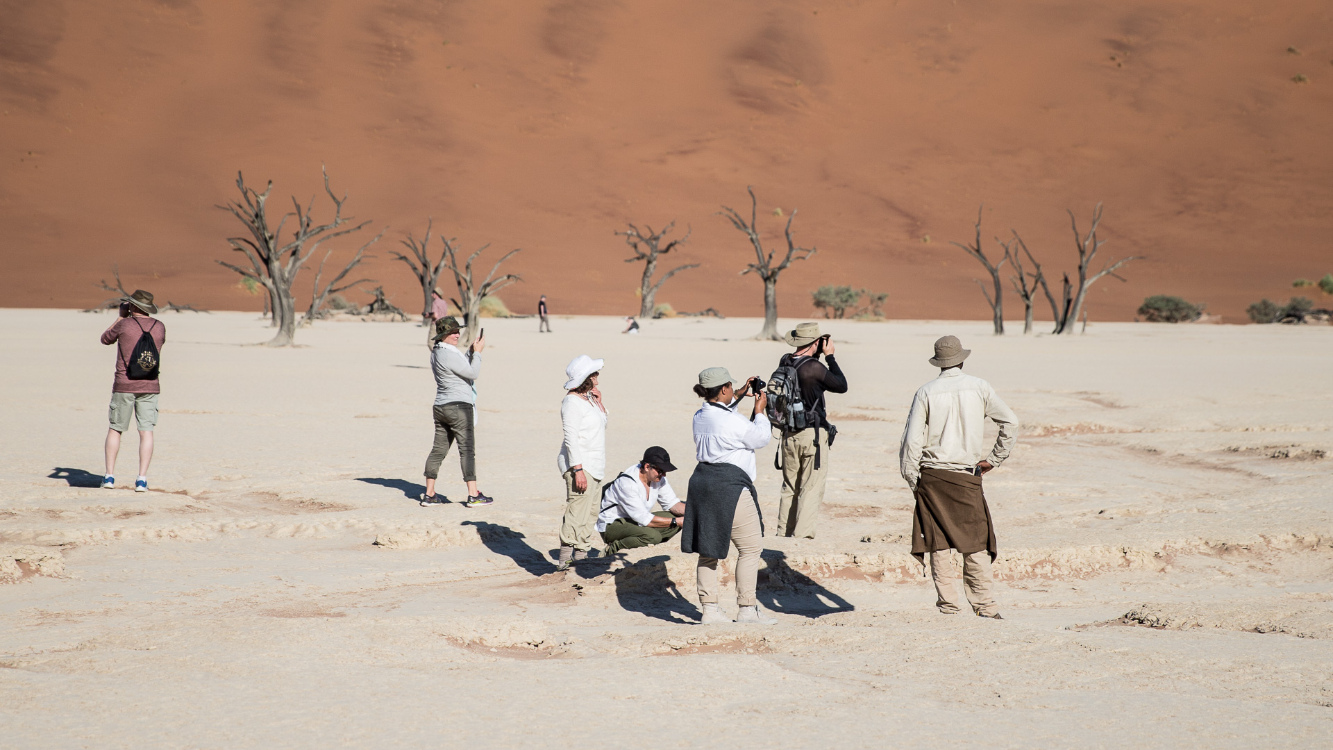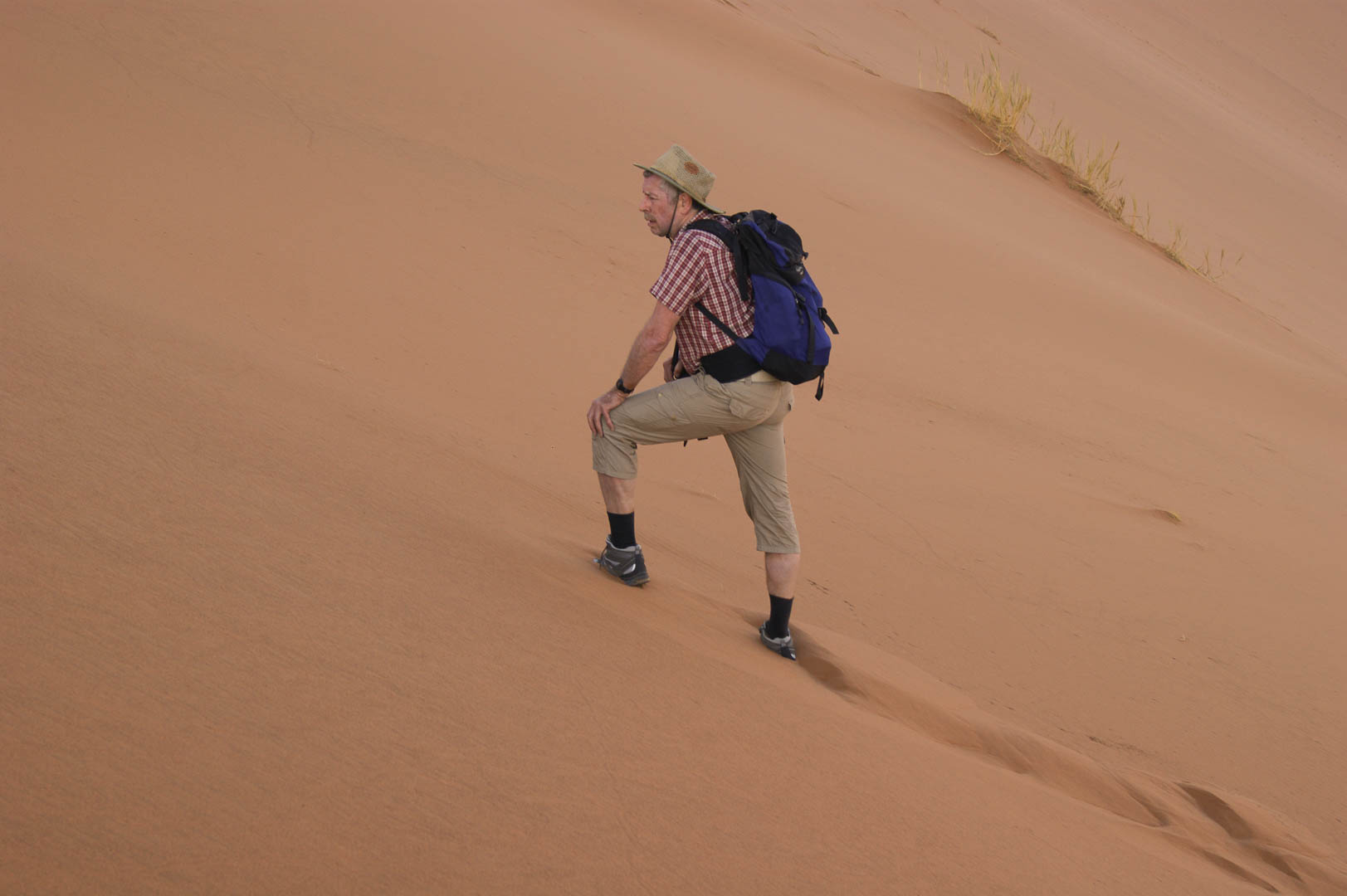 Zusammen mit Elke und Peter aus der Schweiz bestieg Gerald die 350 m hohe Sanddüne Big Daddy, eine der höchsten Sanddünen der Welt, während Klaus im Dead Vlei tolle Bilder schoss.